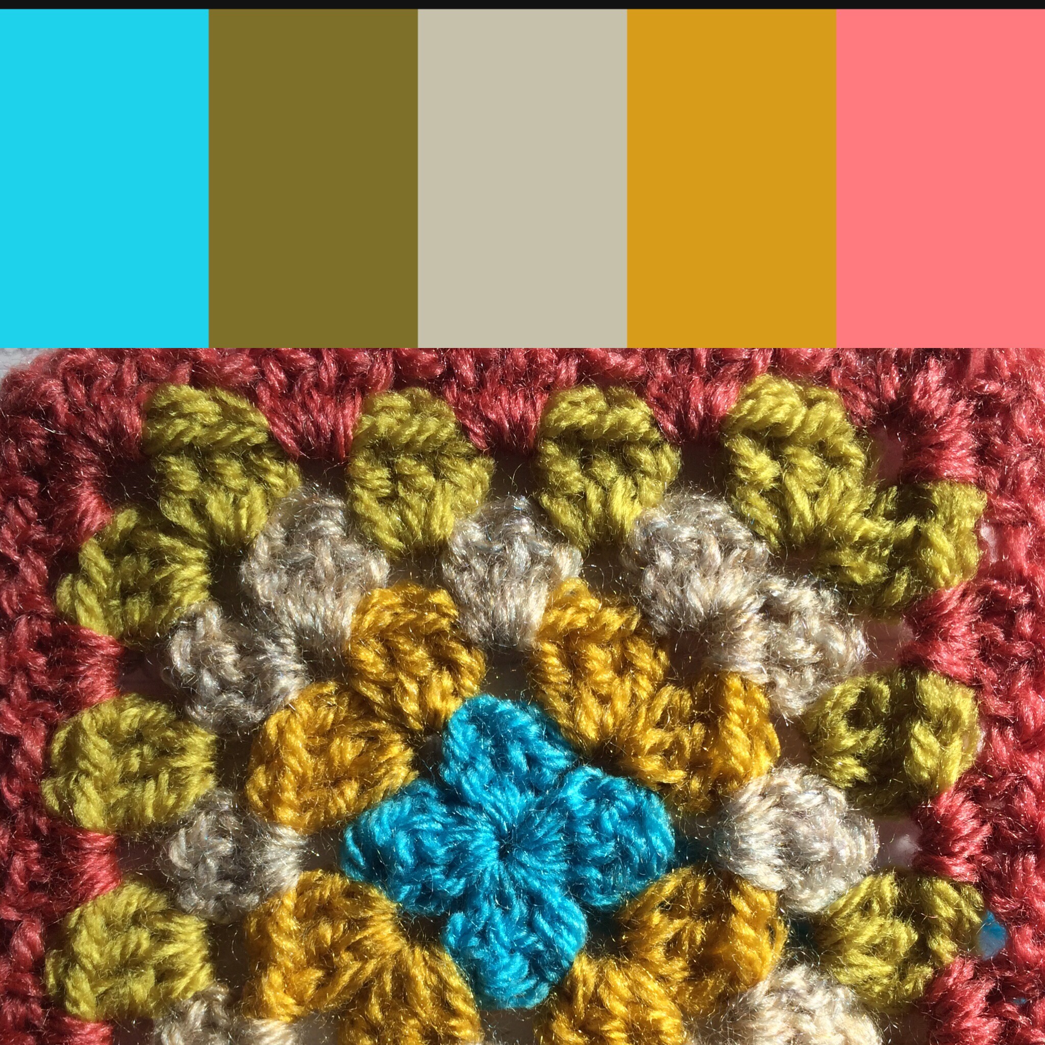 This granny square is a mix of yarns. I’ve chosen some by Cygnet and a few from Scheepjes. All are double knitting.