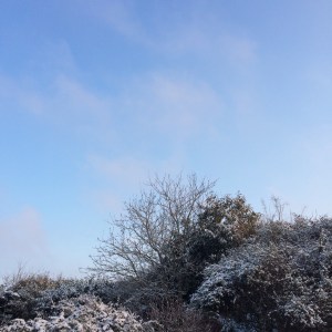 On some days the sky was blue, as can be seen by this view from my ‘studio’ (aka kitchen), but there were dull, grey, snowladen skies too.