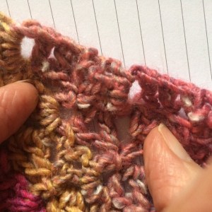 I began it during the ‘flu, and didn’t pick it up again until Sunday evening. Wow! Now that I’m further on I can tell you that I love this yarn!