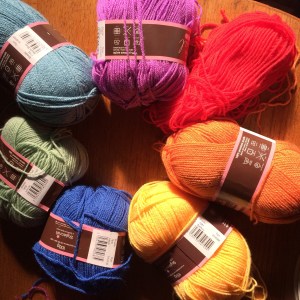 If you read my previous two posts you will know that this won’t be irksome. It’s just one square a day, or seven a week if you prefer to think of it like that. Above you can see the colours I have chosen. You will need seven, choose them, then decide which one is to be used for the border and joining. DON’T FRET OVER THIS. It really doesn’t matter which one you choose – ANY of your seven will work. I have chosen the dark blue colour (Midnight) as my joining colour, which will leave the other six colours for the blocks.