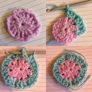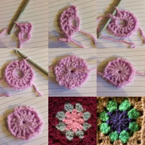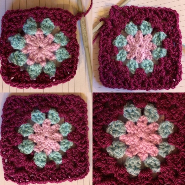 * This may seem obvious, but some blocks, like this one, are better if the hole isn’t closed tightly. To regulate the size of this centre I inserted a crochet hook into the hone before pulling tight.