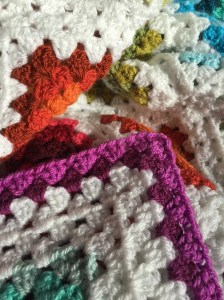 A pack of 10 white balls of Stylecraft Special DK, purchased from Deramores, was all I had to buy. The bulk of the blocks were all made with leftovers from another project. We’ve had a spate of hospital visits over the last 3 months. Hopefully today’s was the last ….. we wait to hear ….