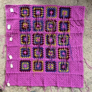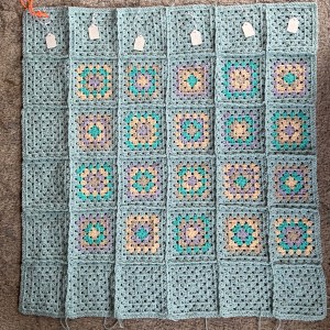 1. Both blankets are looking good. I’ve done 7 squares across without a border. I’ll see about a border at the end according to what size I want the blanket to be. What final size are your blankets going to be when they’re finished?