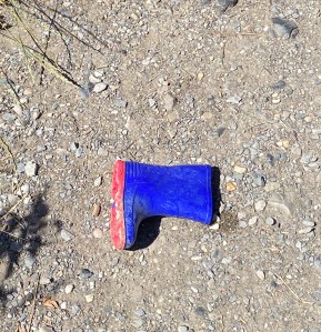 On the subject of blue – we came across this on a recent walk. Does anyone remember. ‘Mr Magnolia’, the story by Quentin Blake? Poor Mr Magnolia only had one boot. I think we found his missing one!