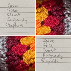 Sometimes the best combinations appear as if by magic whilst working on something else. I’ll definitely be using these again! Don’t forget to let me know if you use them. They are all Stylecraft Special DK purchased from DERAMORES