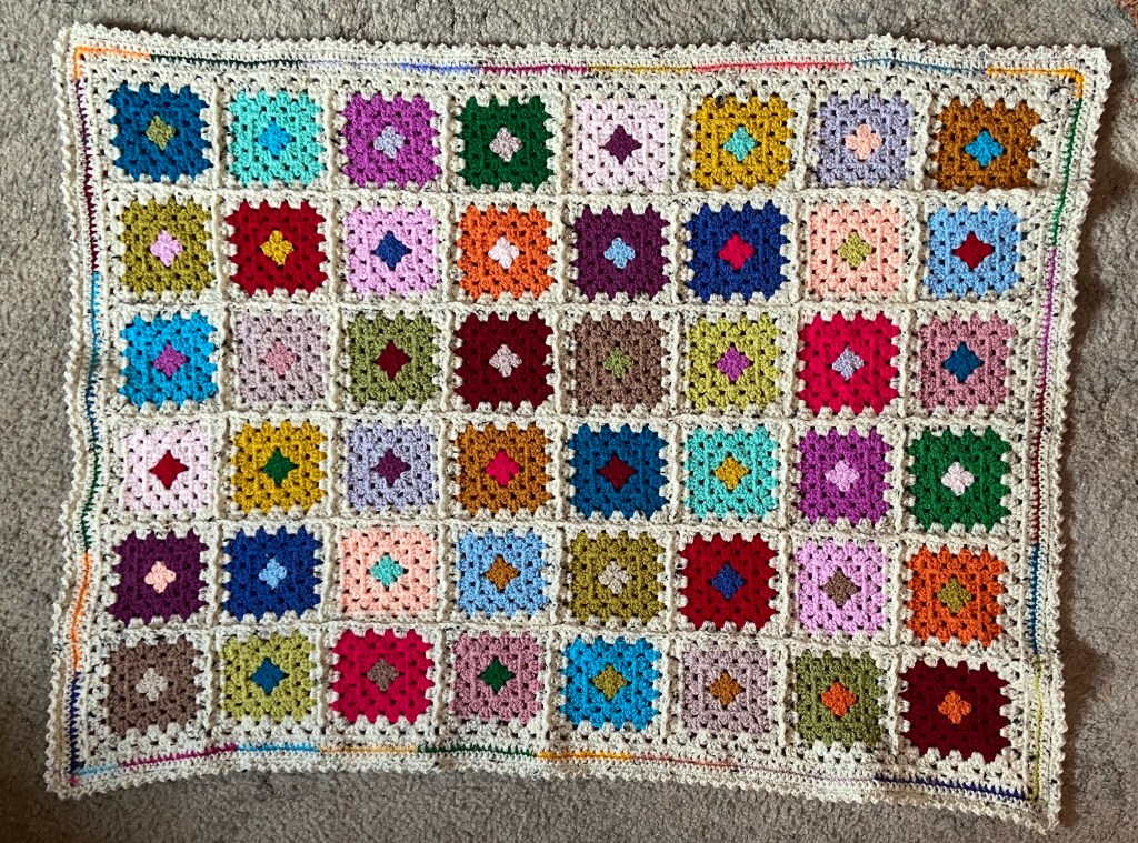 A while ago I began a blanket with a wide range of colours. It was ordered by a customer who was very specific, and especially about the joining colour.