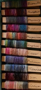 One ball each of the Batik Elements range, namely – IRON, COPPER, SULPHUR, KRYPTON, GALIUM, TITANIUM, MAGNESIUM, MERCURY, PHOSPHORUS, PLATINUM and BISMUTH.