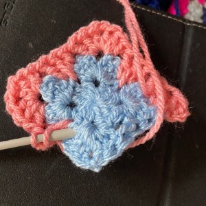 If you have followed along you will have seen the square I’ve chosen for my (first) Friendship Blanket. It is a very simple variation of a traditional Granny Square. I chose it to denote my desire to put a ‘spike’ in Covid but also to virtually pin together my Internet friends! Below are some hints – and further below are links to a couple of videos in case you too would like to use this square.