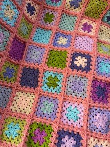 It still has to be washed and blocked. Details of colours used can be found HEREI’ll definitely make another Friendship Blanket next month – it’s been fun inviting colour choices. If you want to make one yourself details are HERE