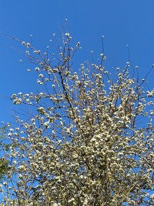 The pear blossom was magnificent – seen at its best against a blue sky.