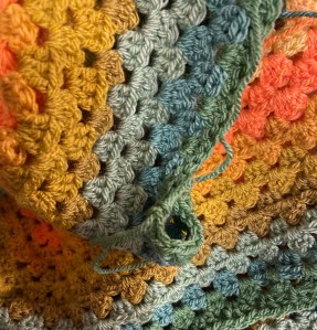 It’s partly a scrap blanket and if you think you recognise the colours so far you are right. Take a look at Nasturtiums here we come! (and associated posts)