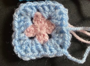 This colour way is a light blue with hints of grey flecks, it comes in 8 shades altogether, the flecks bring more apparent in some. I have really enjoyed using other James C Brett yarns, so I thought I’d give this a go.