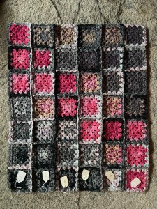 So that’s actually an October finish! It’s Pram Blanket size. It will have to be sold to help fund my yarn habit … so get in touch if you would like it.