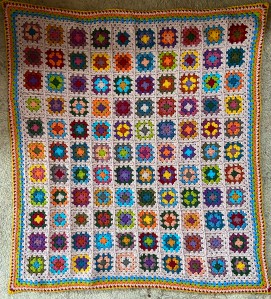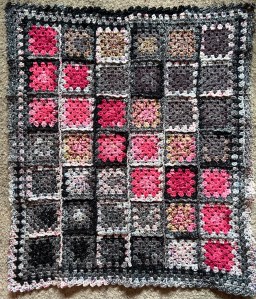 It was my original intention to make inroads into this enormous blanket. And I did make several squares, but before long there was a ‘calling’ from my yarn scraps and I began this.