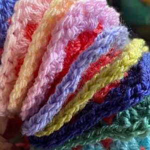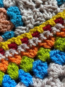 All squares are done! Finished yesterday afternoon. I had hoped to get them into some sort of arrangement and reveal today, but I left it too late and daylight disappeared. Today is cloudy and dismal so I’m not even considering it.