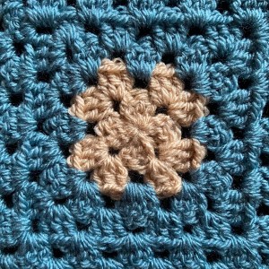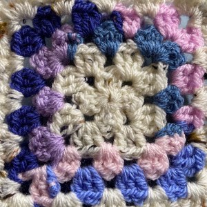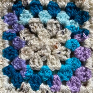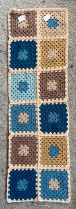 I have found the squares very difficult to photograph on their own, but the addition of the joining yarn shows the colours in their own right.