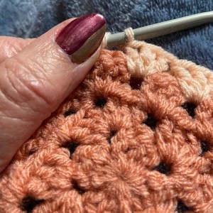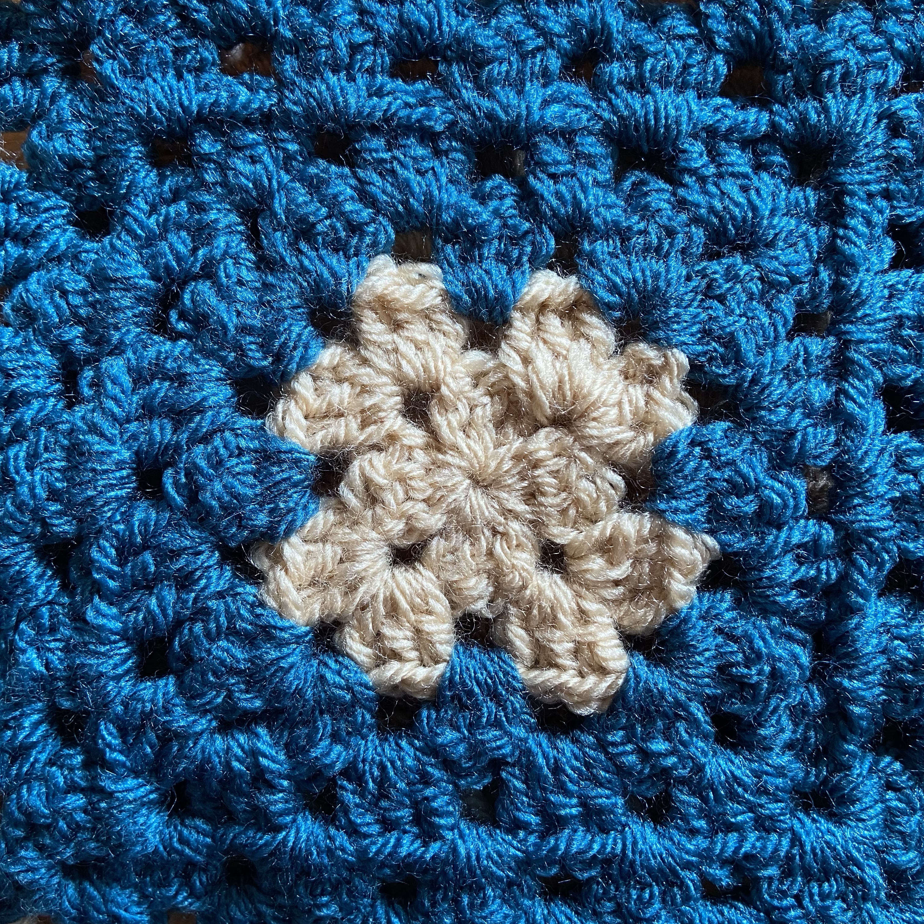 The May blanket in this series will be another made with what I have on hand. I finished the first square a short while ago.