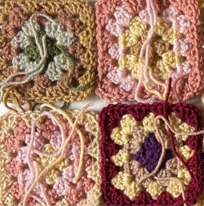 I chose some colours I had earmarked for another project, but I was sure that I had enough to finish this whole blanket (it may take a while ..) so the other project can wait. I’m not sure when the pattern will be released, but, judging by the speed of some of the testers, it won’t be long.
