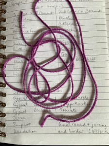 At the beginning of the month we went on a short trip to Wales. Travelling by train meant that luggage was restricted but yarn was essential. The daily yarn went, and so too did some scrap balls ‘just in case’. I was able to make a start on these on the journey when a couple fell, mysteriously, out of my handbag on the train.