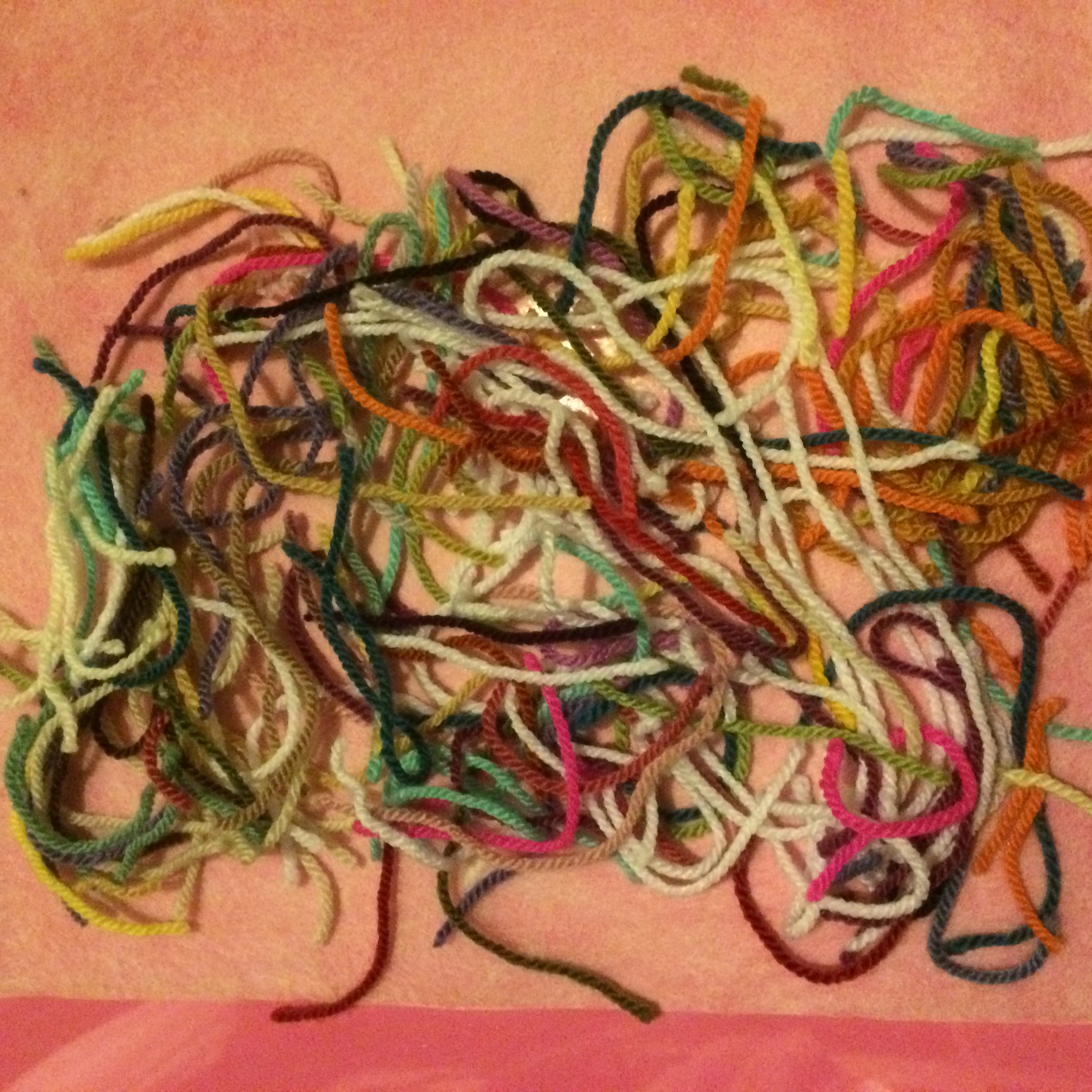 A little tutorial on using some of those ends of yarn that are trimmed after all that sewing in!