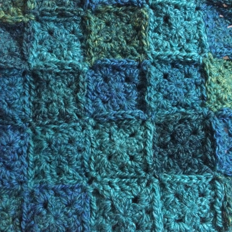 The first Five Colour Friday for 2018. Pretty colours that I've enjoyed using. The outer colour is Mocha, a medium shade of warm brown which is a very useful linking colour. It's been a while since I used this block and it was fun to return to it. Once again the colours are Stylecraft Special …
