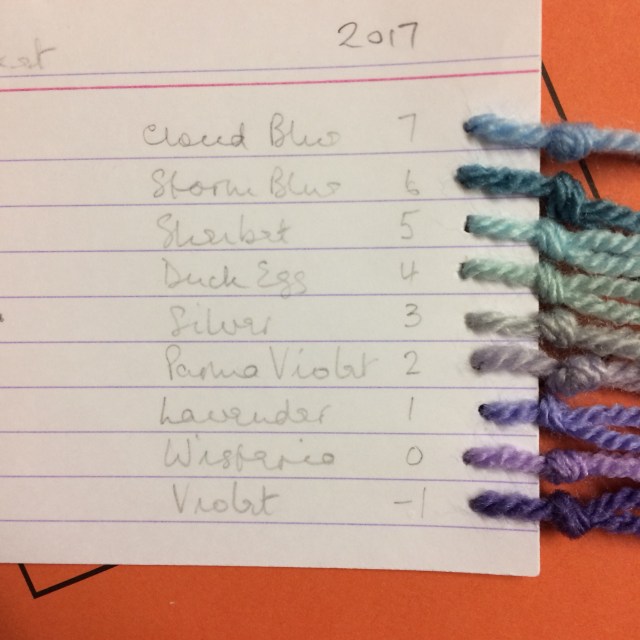 I write down the details twice a day. If you decide to only do one temperature that’s equally valid. Yarns! Who knows exactly which ones we will need for 2018? You can see above those that I didn’t use. I haven’t shown the ones chosen for above 34 deg. If you need them for the Southern Hemisphere let me know and I’ll photograph the card.Tags!